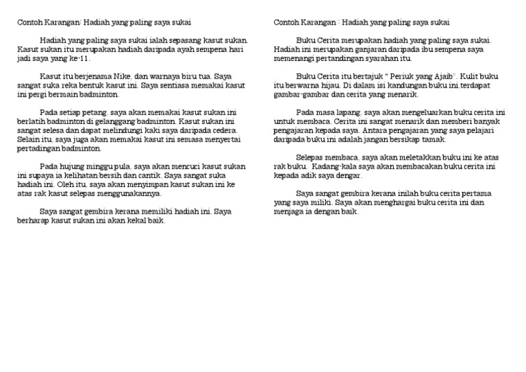 Contoh Karangan Hadiah Yang Saya Sukai Pdf